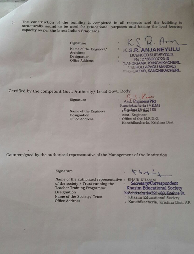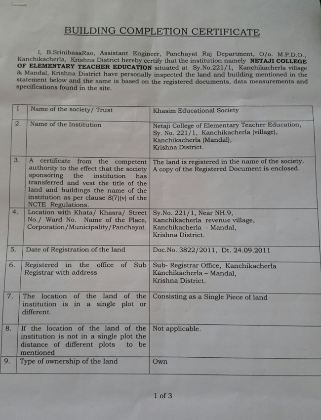 Documents NCTE Order BCC Building Plan Affidavit Student Data NCTE Order Building Completion Certificate Building Plan Affidavit Student Data S.NO STUDENT NAME S.NO STUDENT NAME 1 RENUKA THOKA 26 NADA ABRAHAM RAJ KUMAR 2 UPPU ANUSHA 27 RENTAPALLI SOBHANA 3 OBULAREDDY APARNA 28 SHAIK ASHABI 4 SHAIK KANNES FATHIMA 29 MARKAPUDI MANISHA 5 POTHULA SUNITHA 30 BHUKYA NAGARAJA KUMARI 6 SUNKARA MANISHA 31 KOTA SAI KUMAR 7 MANDA BABU 32 MANDURI GOPICHAND 8 SHAIK ARIFUNNISA BEGUM 33 MADUGULA KALYANBABU 9 MAHESWARA SUPRAJA 34 POTTURU LOVARAJU 10 POGULA KRISHNA VENI 35 GUJJARLAPUDI RANI 11 DUDEKULA KARIMBEE 36 BANOTH HARI KRISHAN 12 SHAIK MEERABI 37 BANOTH RAJIV GANDHI 13 THOTA SANTHOSH BABU 38 JANGA PALLAVI 14 BANDARU TARANGINI 39 BELLAMKONDA MARIYA KUMARI 15 NAGUL MEERA SHAIK 40 POTTURU DHARABABU 16 USHARANI JANGALA 41 PODILA DEVI 17 SIDDAPUREDDI LAVANYA 42 NARENDRA KUKKALA 18 KAREM ANUSHA 43 KOTERU BHASKARA REDDY 19 MEKAPOTHULA BALARAMA KRISHNA 44 CH RAMA 20 RAJIYABI SHEKI 45 AKINA NAGAMANI 21 BHUKYA NAGARAJU 46 NAGAJYOTHI PADMANABHUNI 22 BHUKYA SRIKANTH NAYAK 47 YAJJALA SOUJANYA 23 SHAIK MASTANBI 48 AMPURANGI PARAMESWARA RAO 24 SHAIK GHOSHABEGAM 49 N ANURADHA 25 SHAIK JANMIA 50 SHAIK NAYEEMA BEGUM